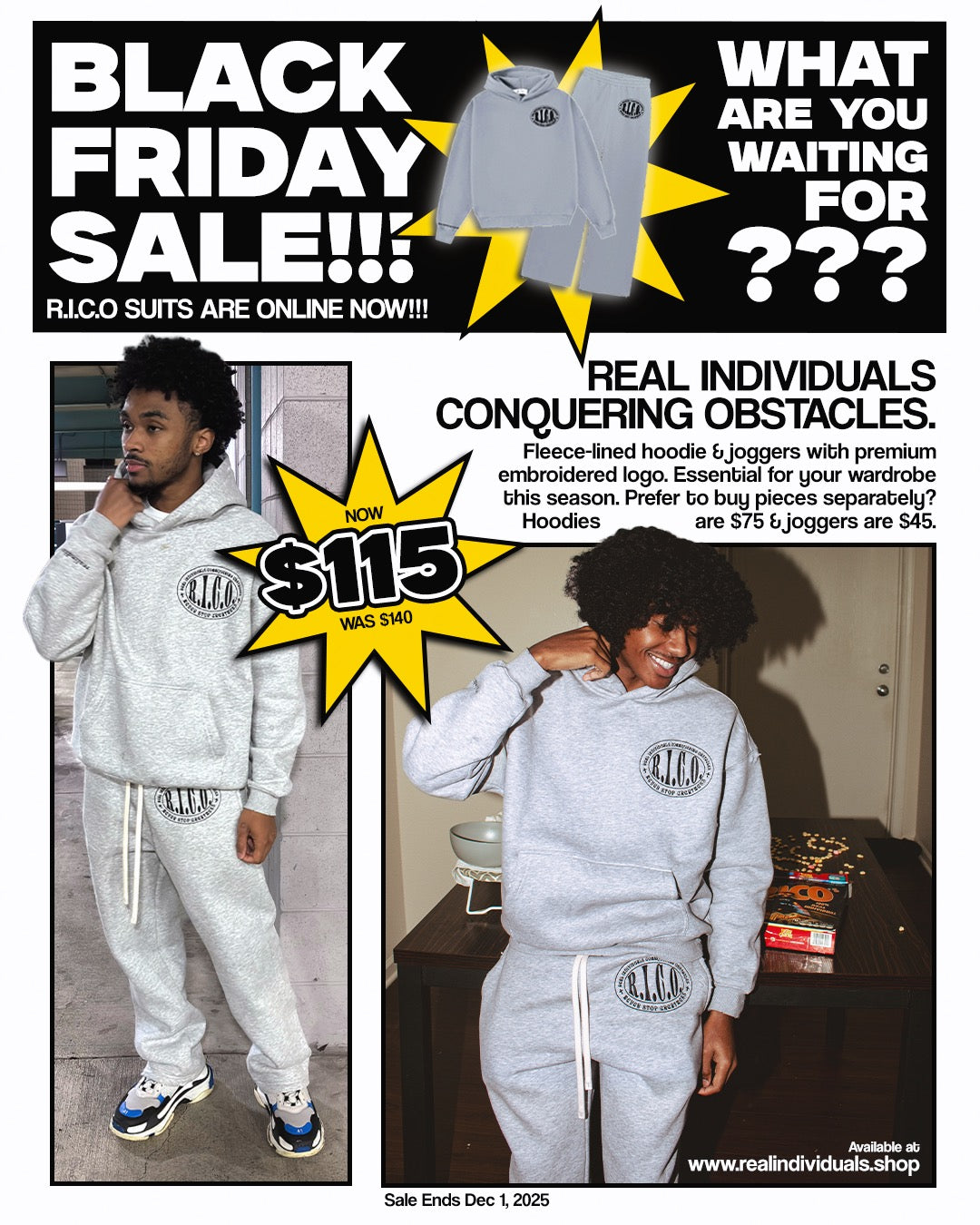 R.I.C.O. (Real Individuals Conquering Obstacles) is an inspiring Detroit-based brand founded in 2021 by Rico and Rikayla Seatts. The vision behind R.I.C.O. is to highlight the universal truth that everyone faces challenges, but perseverance and faith can lead to achieving our dreams. After years of conceptual development, the brand was revitalized for its much-anticipated release in the fall of 2024 and is now also available in East Lansing. R.I.C.O. serves as a powerful reminder to never let obstacles hinder your journey to greatness.